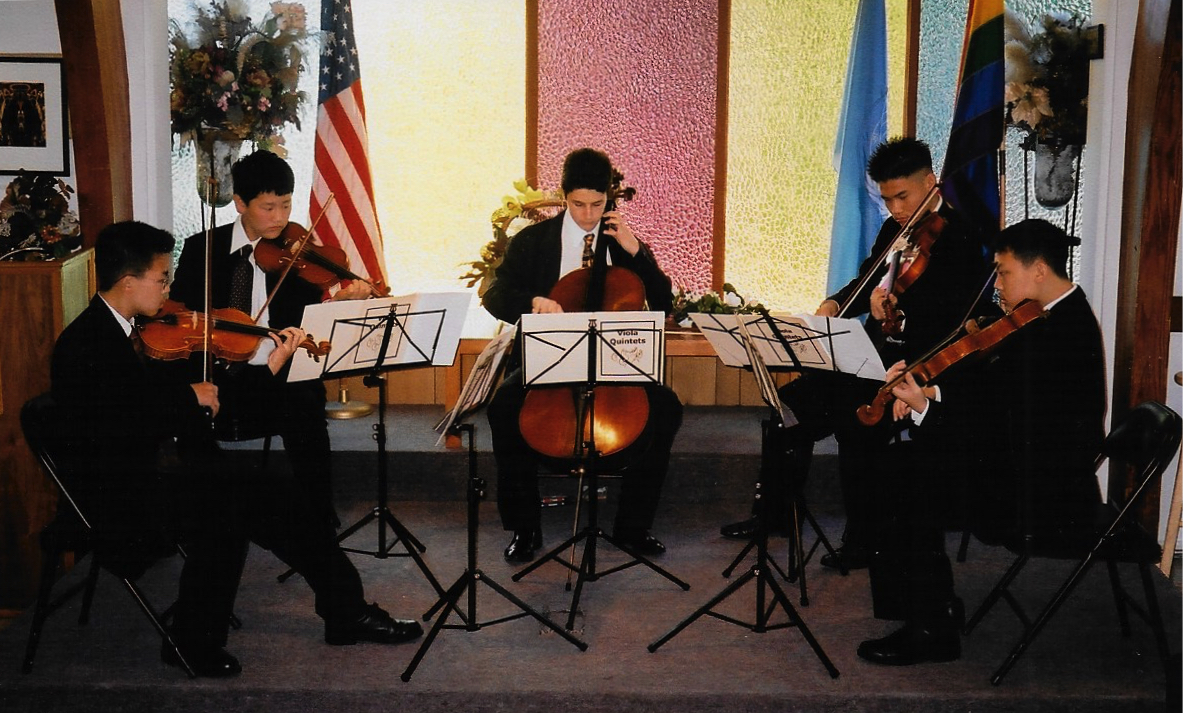 (L to R) Scott Loh and Jonathan Sun, violin; Michael Fan, cello; Percy Wong, viola