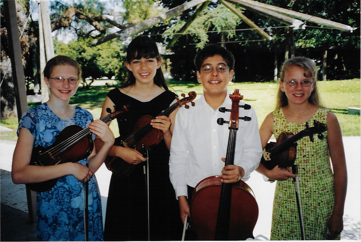 (L to R) Jennifer Franklund and Karyn Haitz, violin; Julian Sharifi, cello; Oliva Cottrell, violin