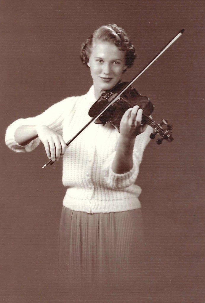 She began her master’s work in violin under Eudice Shapiro at the University of Southern California (USC), but marriage bells drew her to an Army private, Pete Andreas. Soon she was the concertmaster of the Fort Smith Symphony Orchestra (Arkansas) and, in one of the highlights of her career, performing the Mendelssohn violin concerto (in E minor, Op. 64) with the Oklahoma City Symphony. However, her first child, David, born during this time, was severely disabled and she all but gave up her music career to care for him full-time. When he died at age 5, she poured herself back into her music, but the wound of his loss never healed. Even while still caring for David, she continued her education at the University of Iowa (where she earned a master of arts in viola performance). Although she valued the instruction of William Preucil (Sr.) there, she always regretted her naïveté: that, once again, no one impressed upon her the importance of auditioning for a place at Juilliard or Curtis or one of the other leading music schools.