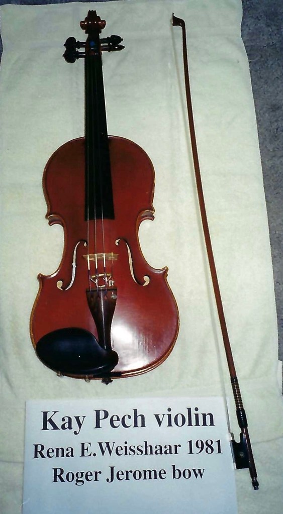 Kay’s violin is currently for sale. If interested, contact the Weisshaar shop in Costa Mesa, California.